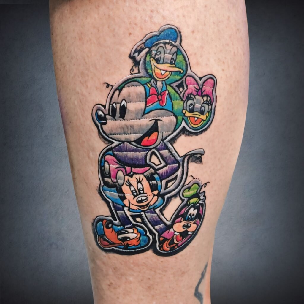 This tattoo style is perfect for those who carry a playful heart and cherish the timeless magic of animation.
