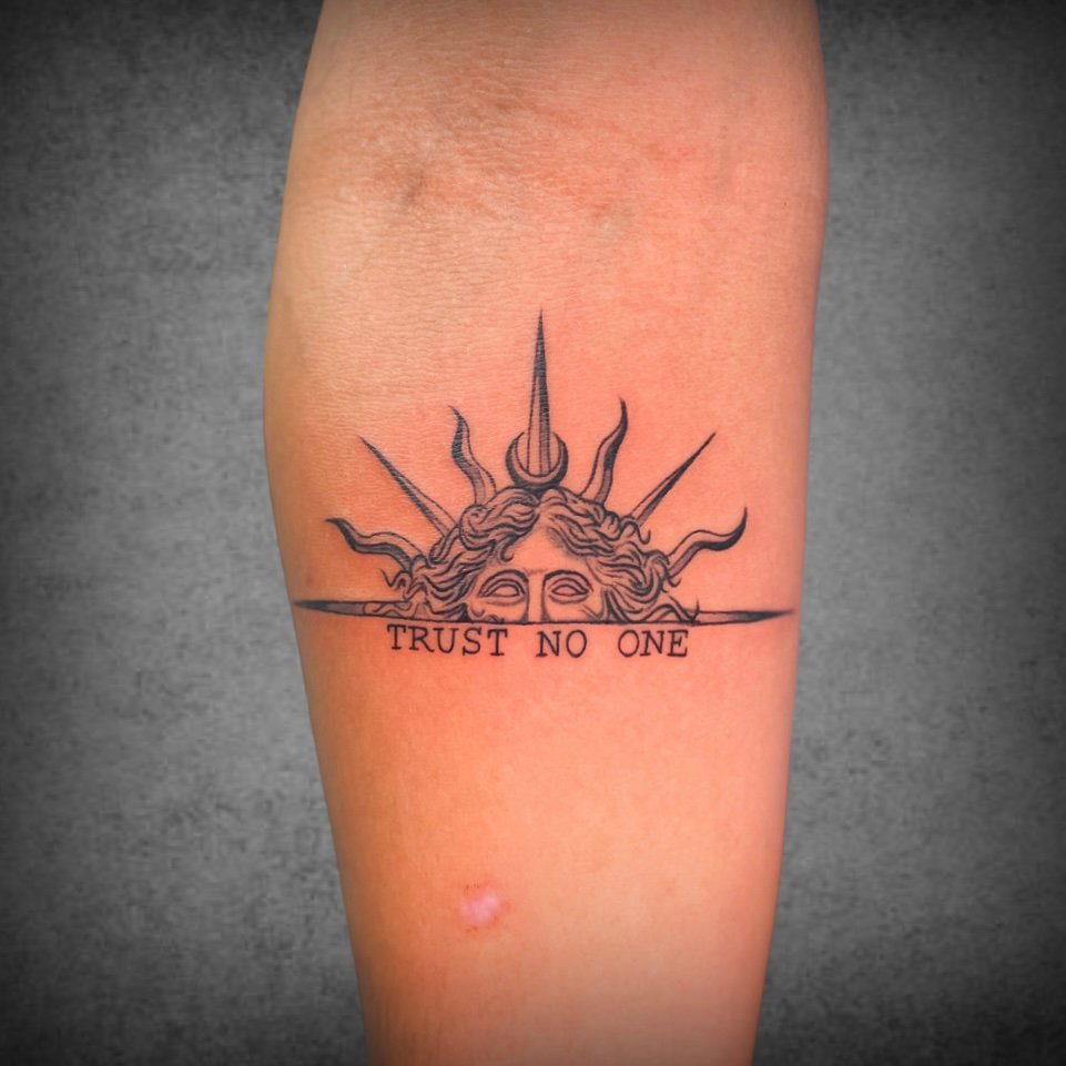 Script tattoos are more than simple lettering — they are emotional reflections etched into the skin, carrying one’s beliefs, philosophies, and life experiences. A phrase like “TRUST NO ONE” speaks to resilience, clarity, and the wisdom earned through personal journeys. People who choose script tattoos often express their deepest values in the most direct yet artistic way.